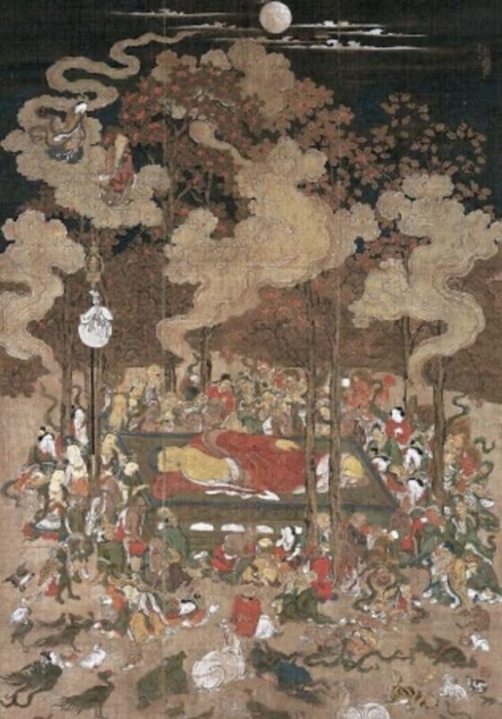 言い伝えでは、お釈迦様が涅槃に入られる直前に、天上から母親のマーヤ夫人が現れ、より長く生きて欲しいという願いを込めて、横たわるお釈迦様に向けて訶梨勒を投げたそうです。この様子はお釈迦様が入滅した時に様子を描いた涅槃図にも描かれています。